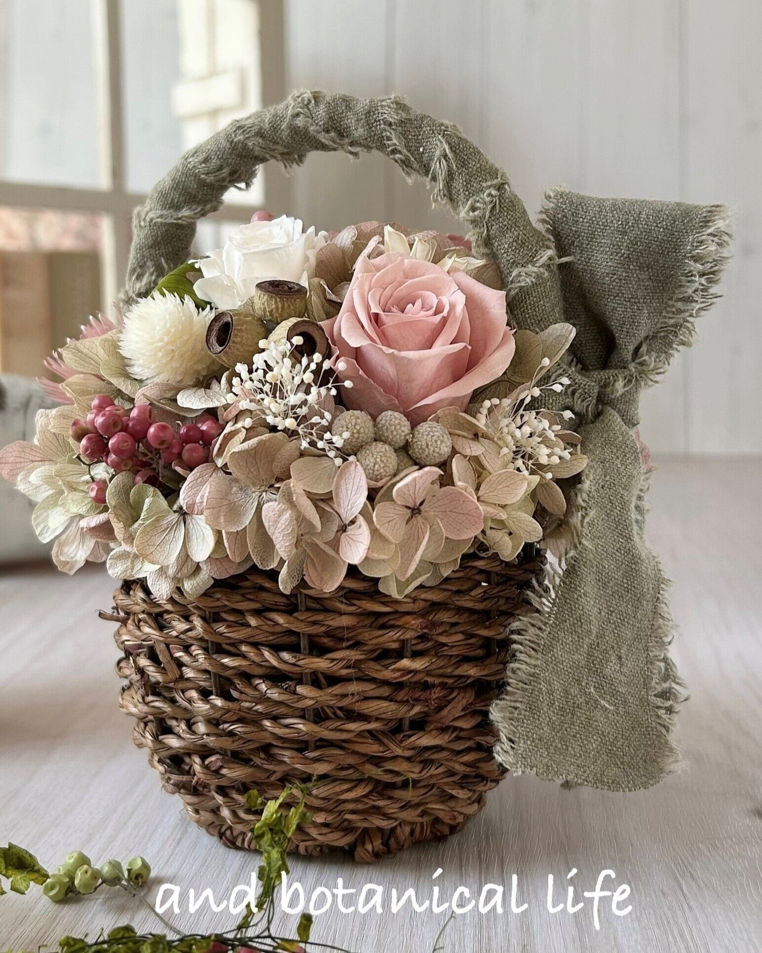 優しいくすみピンクのアレンジメントは、大人の女性に愛される魅力的なアレンジです。