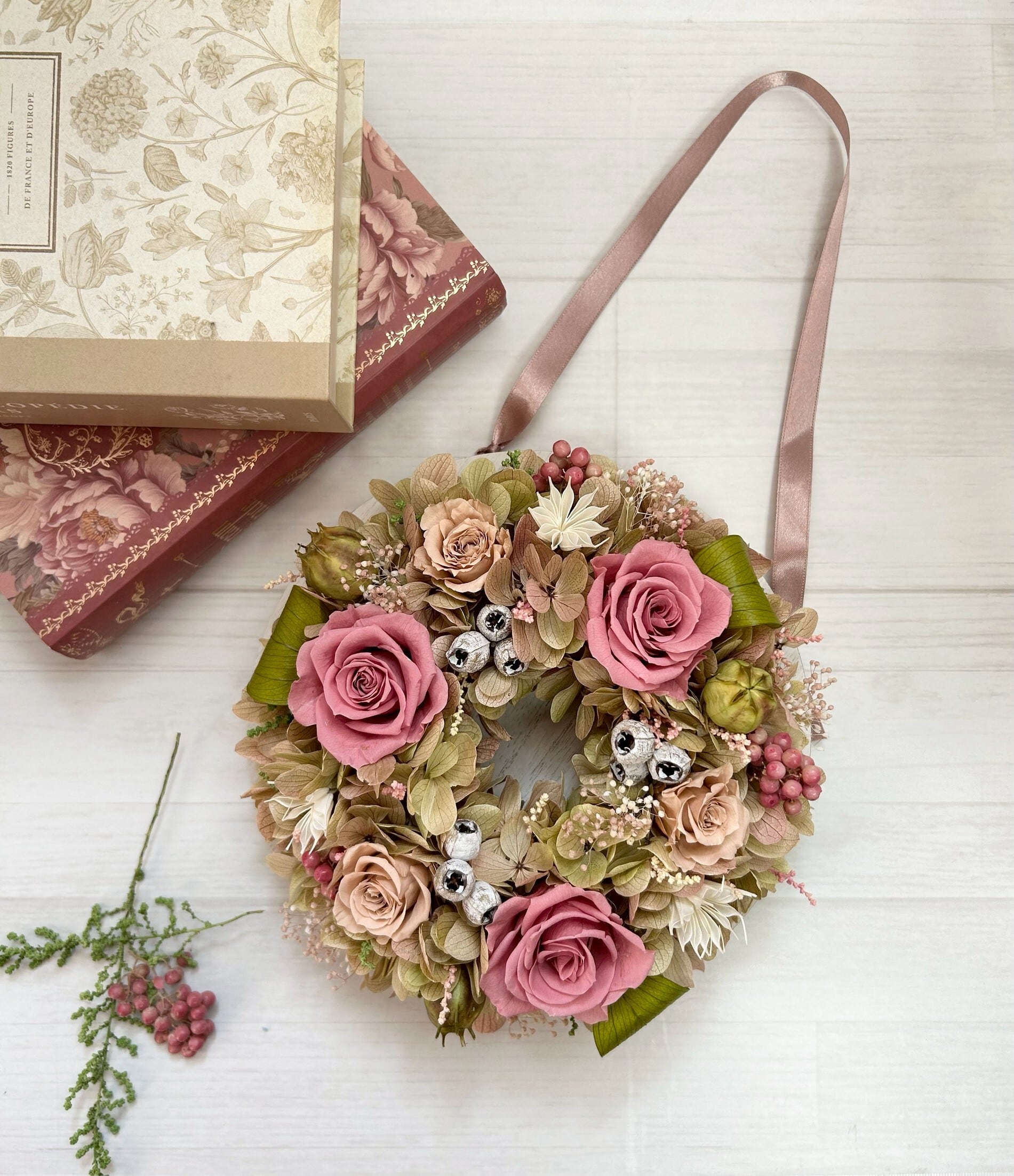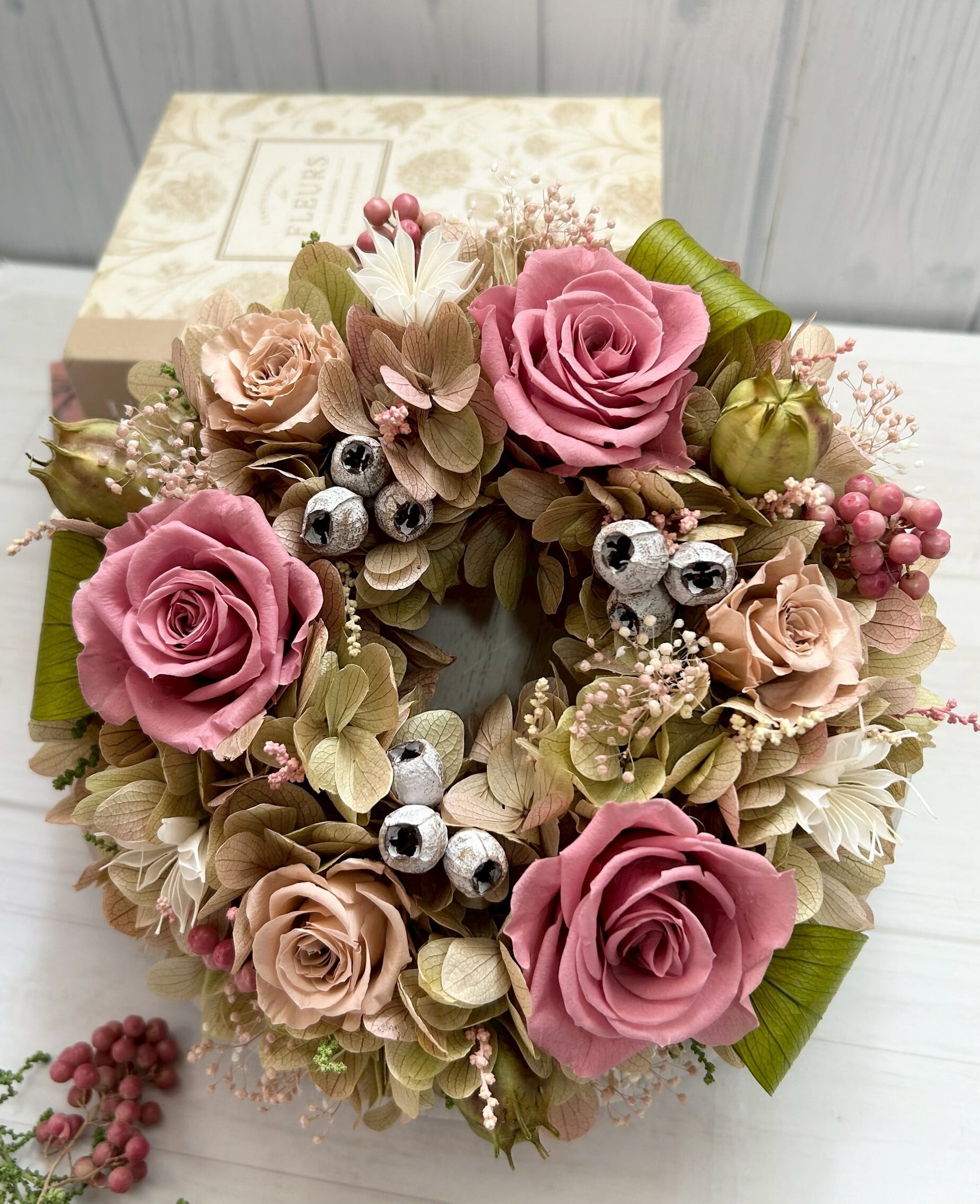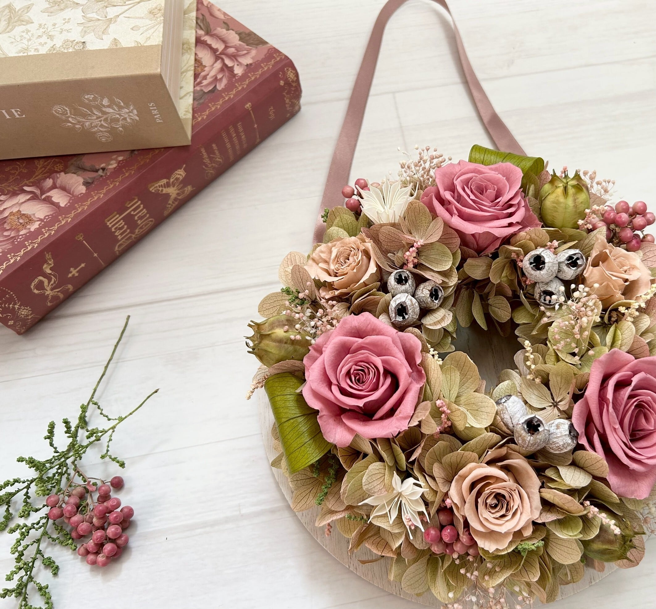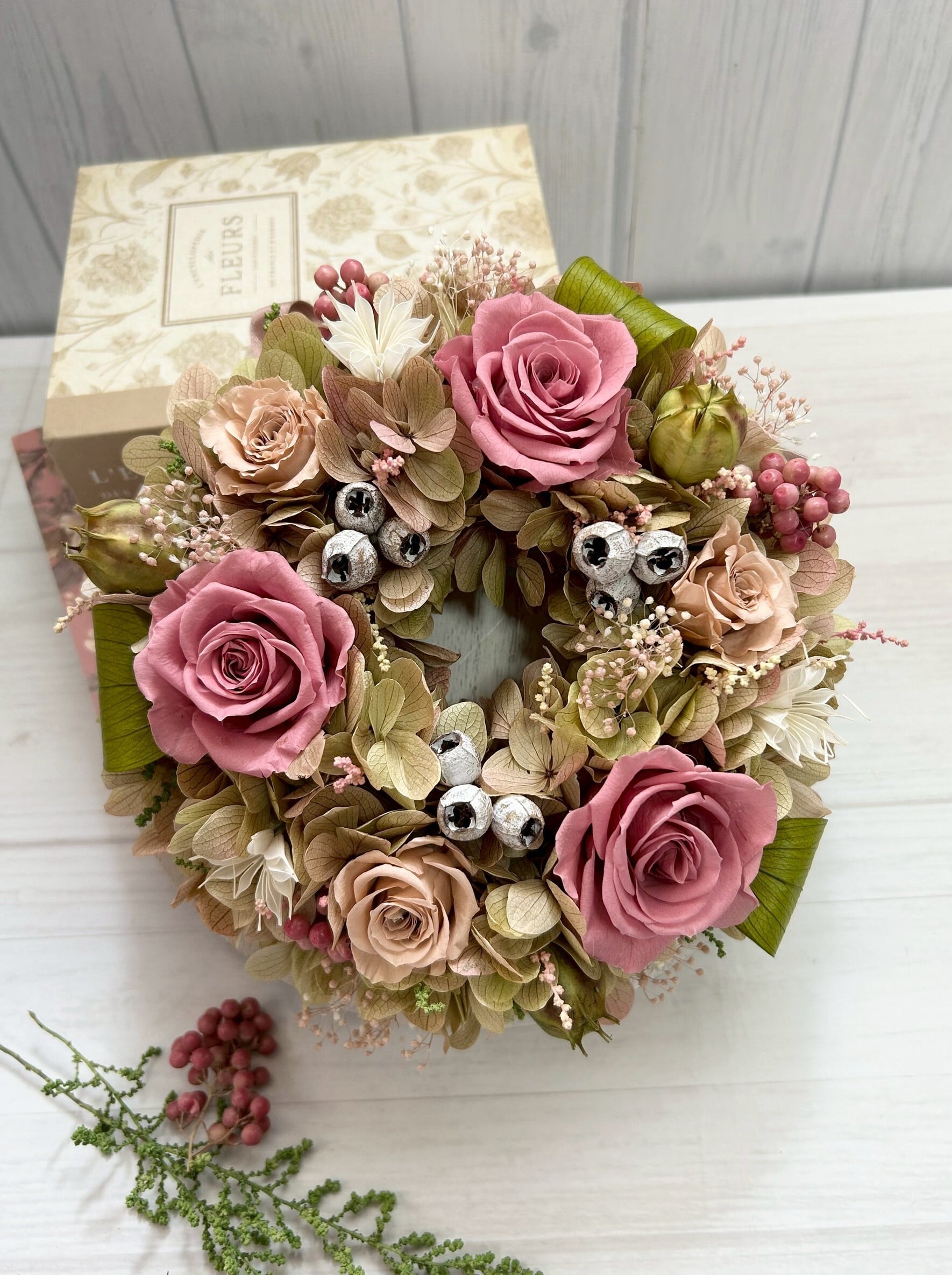 【受注制作/プリザーブドフラワー】~円を結ぶロゼのボタニカルリース ~