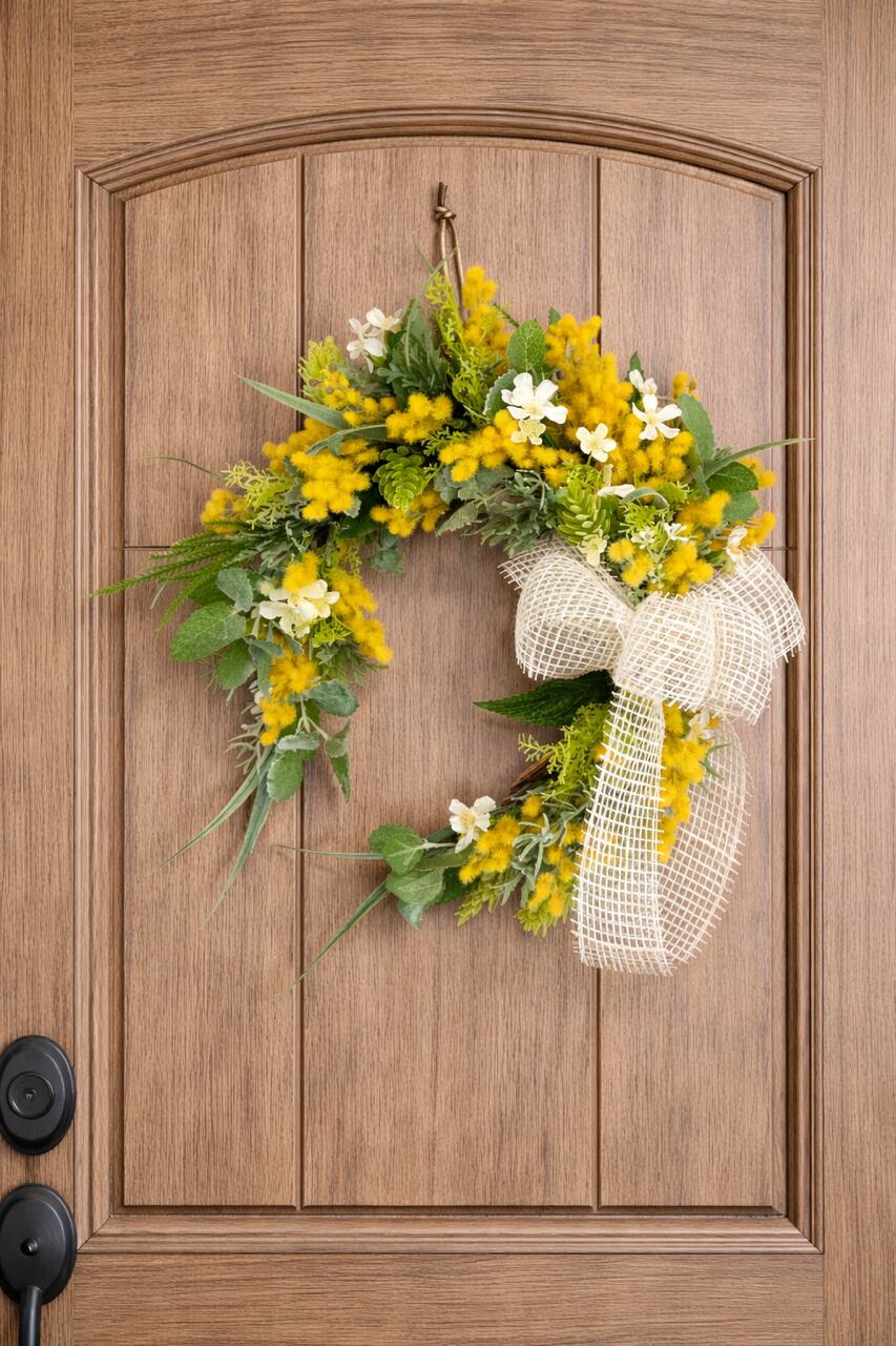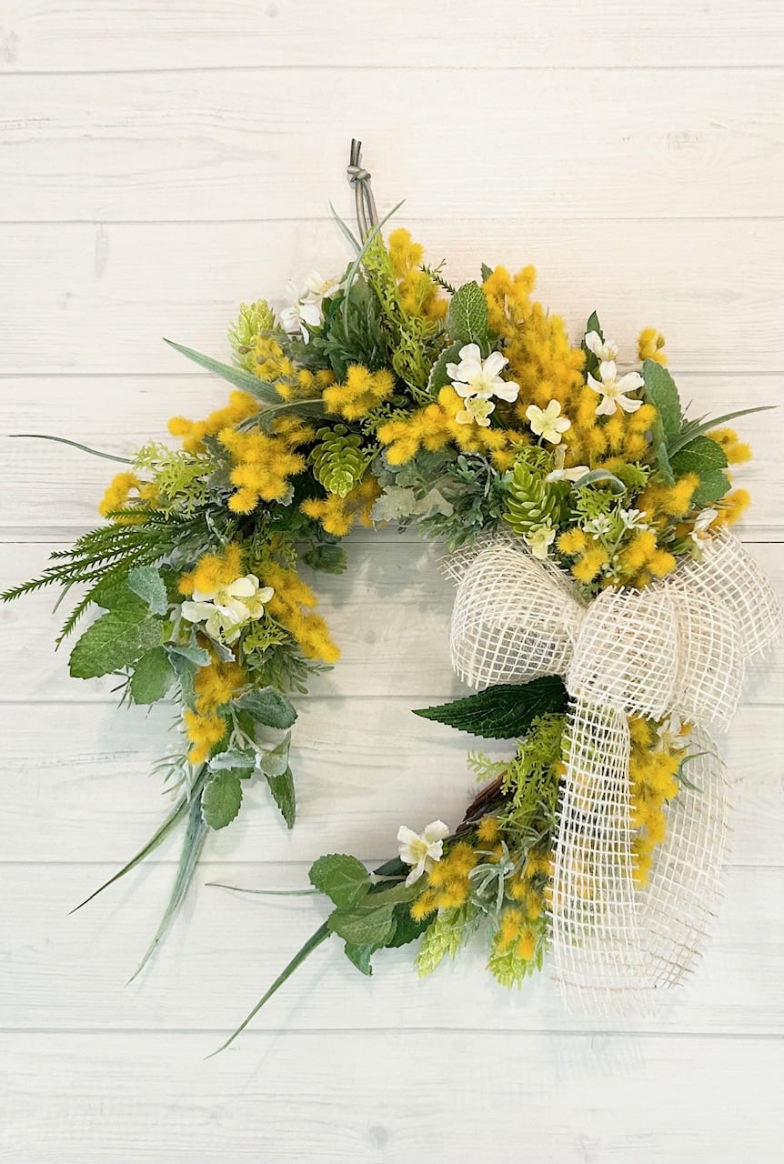 ふんわりと咲くミモザをたっぷりあしらった