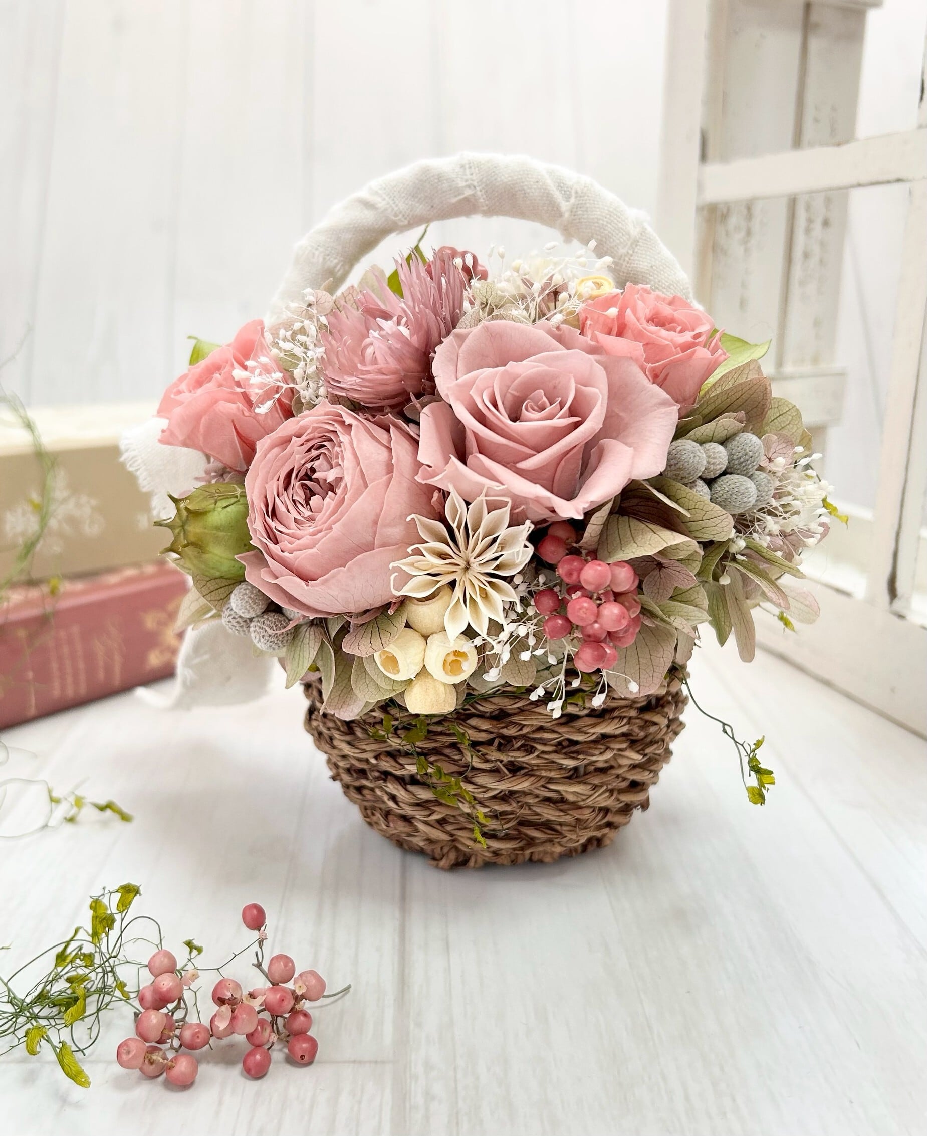 【プリザーブドフラワー】くすみピンクの上品なフラワーアレンジメント 母の日 誕生日 結婚祝い 出産祝い 開店祝い 退職祝い ご長寿祝い 引越し祝い